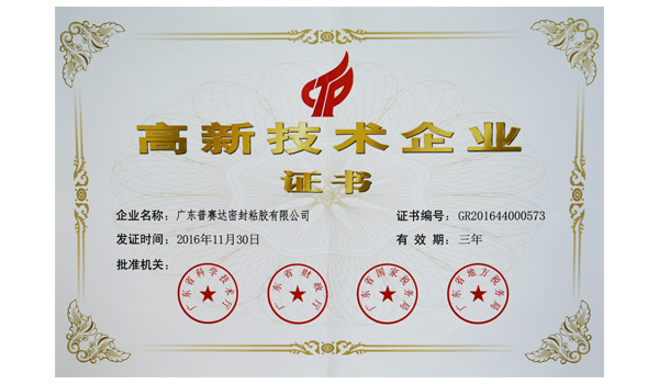 近日,公布了《2016年國家高新技術企業(yè)復審結果》,廣東普賽達密封粘膠有限公司榜上有名,標志著公司順利通過高新復審,再次被認定為高新技術企業(yè),現(xiàn)已頒發(fā)證書。(證書編號:GR201644000573)