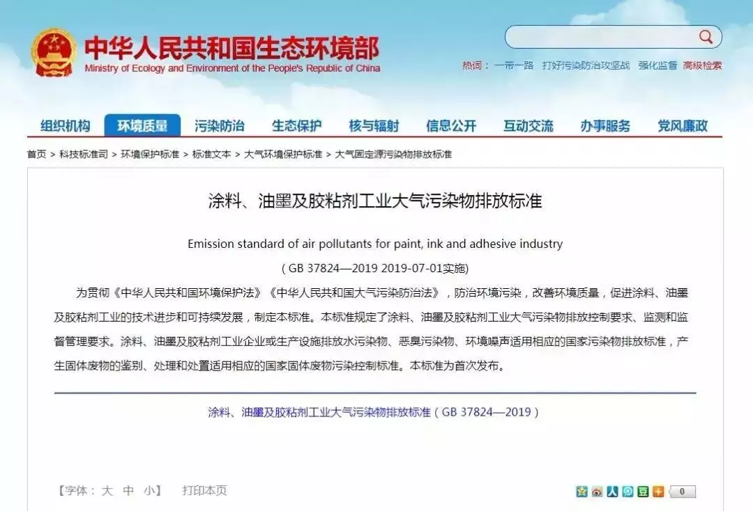 為貫徹《中華人民共和國環(huán)境保護法》和《中華人民共和國大氣污染防治法》,防治大氣污染,改善環(huán)境空氣質(zhì)量,2019年5月24日生態(tài)環(huán)境部聯(lián)合國家市場監(jiān)督管理總局發(fā)布了強制性國家標準《涂料、油墨及膠粘劑工業(yè)大氣污染物排放標準》(GB 37824-2019)。