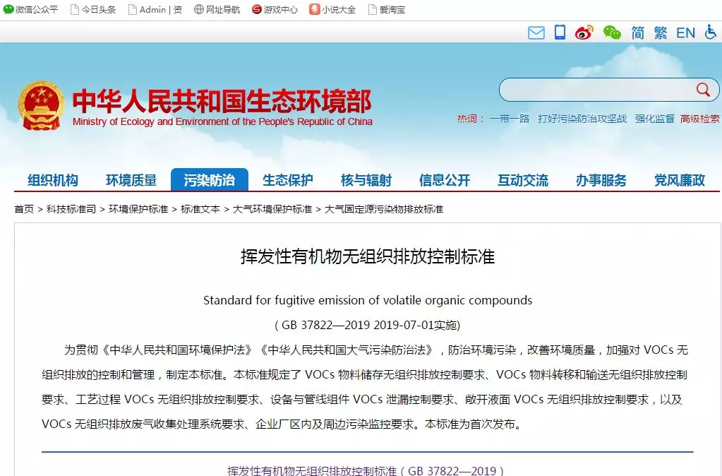 同時發(fā)布的還有《揮發(fā)性有機物無組織排放控制標準》(GB 37822-2019)、《制藥工業(yè)大氣污染物排放標準》(GB 37823-2019)等兩項強制性國家標準。