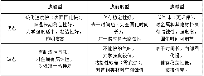 表1. 幾類(lèi)硅酮膠的優(yōu)缺點(diǎn)對(duì)比