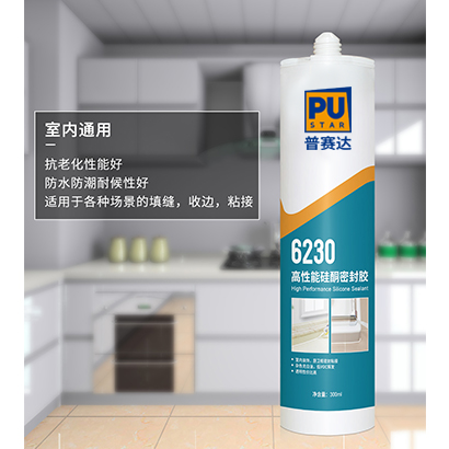 6230為單組分濕氣固化密封膠,采用中性硅酮膠作為原料, 對環(huán)境無污染,與金屬、陶瓷、玻璃、石材等多種基材具有良好的密封粘接性能。